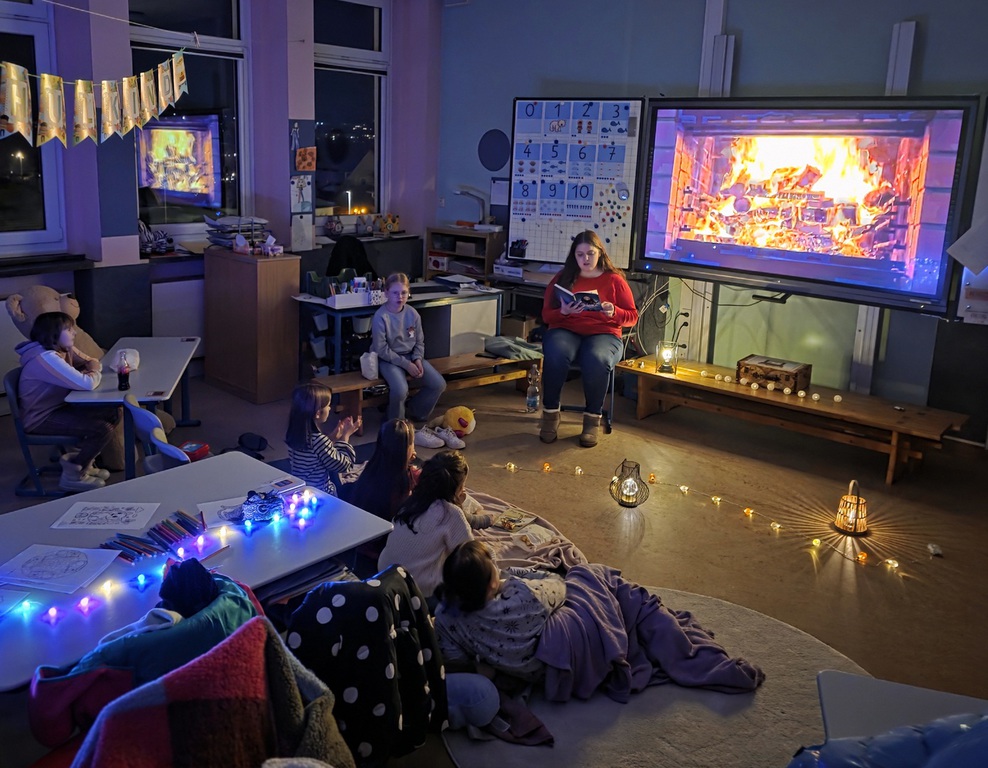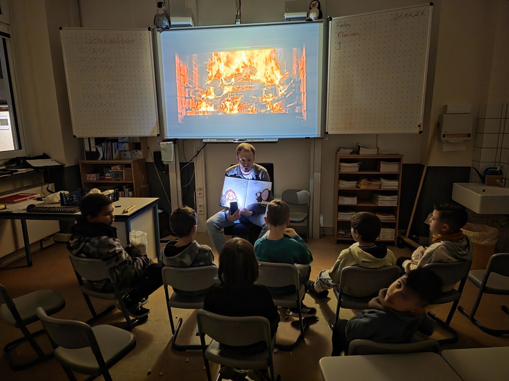 Am vergangenen Freitag, 21.11.2025 fand der bundesweite Vorlesetag statt, den die Grundschule Westrich erneut zum Anlass nahm, ihr traditionelles und mittlerweile fest etabliertes Lesekino zu veranstalten. In stimmungsvoll gestalteten „Vorlese-Kinosälen“ konnten die Schülerinnen und Schüler eine Stunde lang in die Welt aktueller und klassischer Kinderliteratur eintauchen.