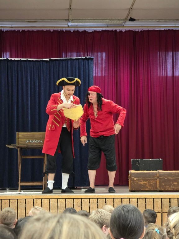 Die Brühlhalle der Grundschule Westrich verwandelte sich am Dienstag, 25.11.2025 in eine Welt voller Abenteuer, Geheimnisse und Humor: Mit seinem Stück „Die Schatzinsel“ präsentierte der preisgekrönte Zauberer Jakob Mathias als Piratenkapitän mit seinem „Smutje“ eine einzigartige Mischung aus Mitmachtheater für Kinder, Zaubershow und Comedy. Von der ersten Minute an zog Jakob Mathias das junge Publikum in seinen Bann. Dank seiner interaktiven Inszenierung waren die Kinder nicht nur Zuschauer, sondern auch magische Helfer. Besonders die gelungene Verbindung aus immer wiederkehrenden Mitmachbewegungen, spektakulärer Zaubershow und kindgerechter Comedy sorgte für herzhaftes Lachen und staunende Gesichter. Hier wurden Humor, Spannung und Magie ideal vereint.
