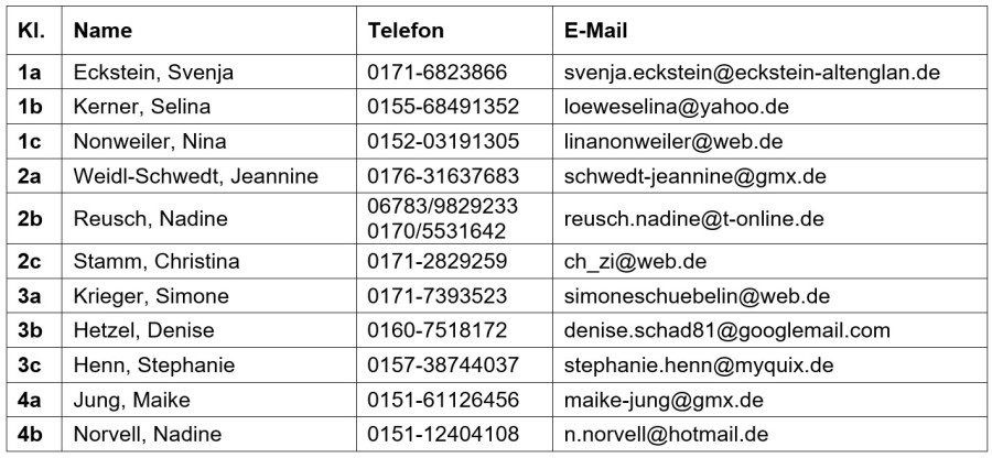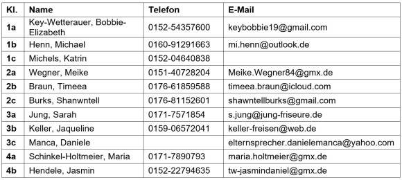 Stellvertretende Klassenelternsprecher im Schuljahr 2023/2024